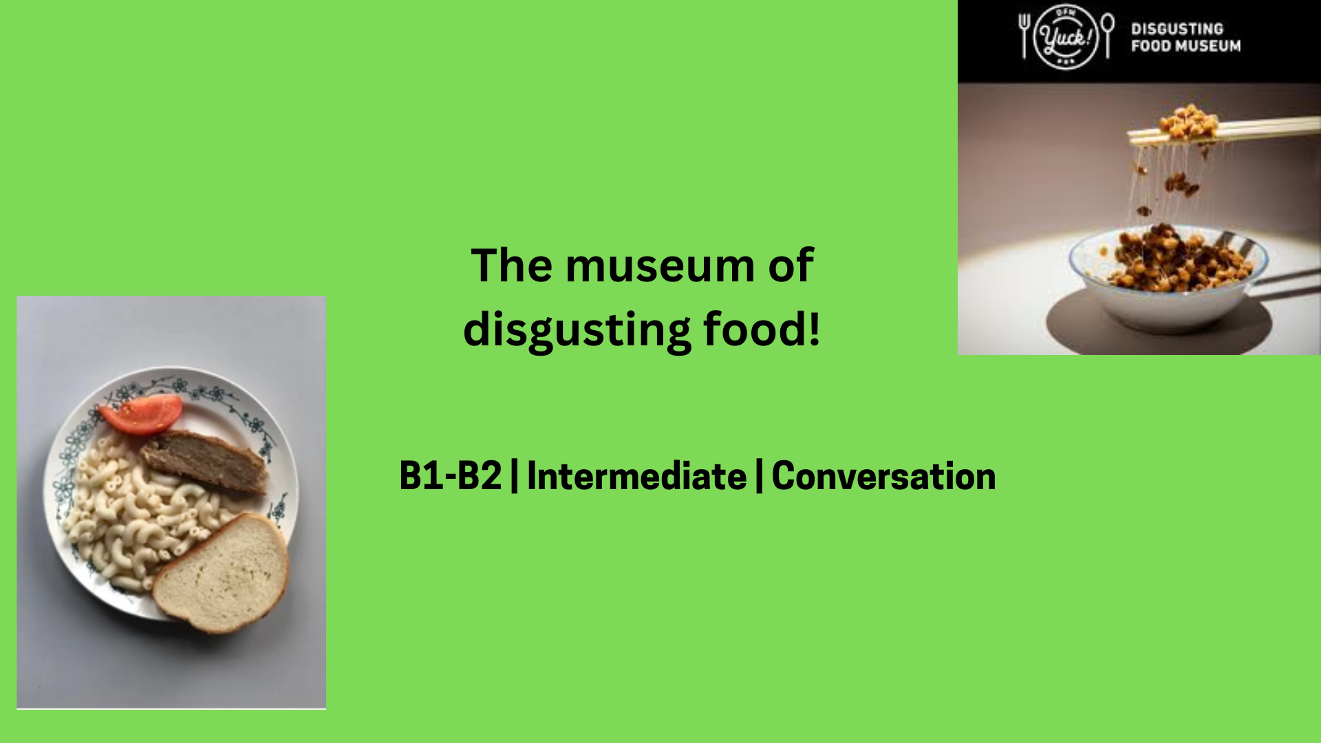 I have an interesting video for you to watch - 'the museum of disgusting food'. We will watch the video together and discuss it.